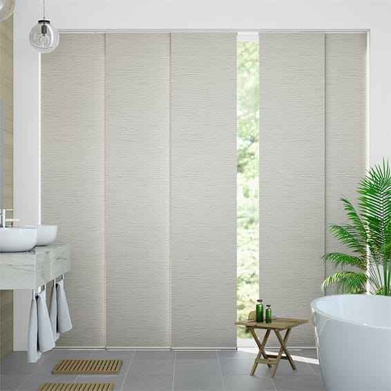 カレス ナチュラルは、スライド開閉式のバーティカル・パネルブラインド。片開き・両開きが選択でき、スムーズな開閉で、ベランダの掃き出し窓など大きな窓におすすめです。