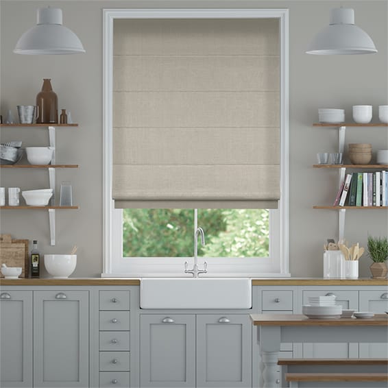 ビジュリネン グレーウォッシュ ローマンシェードは、モダンでナチュラルな明るいグレーが人気です。