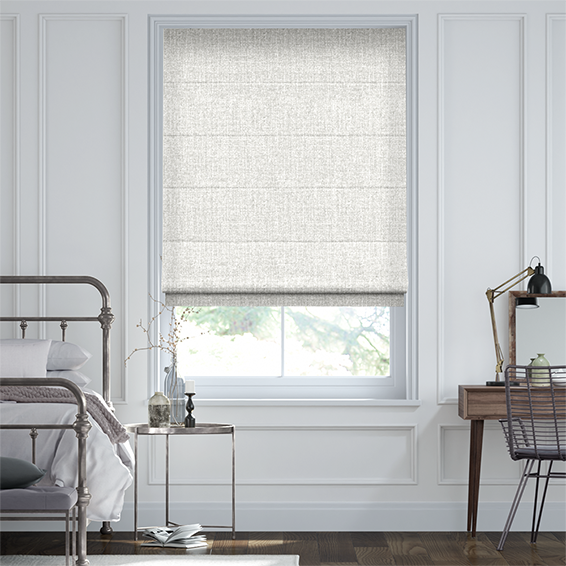 モダンでエレガントなエンカント シマリングプラチナ ローマンシェードは、今注目の「きらめく」アイテム。