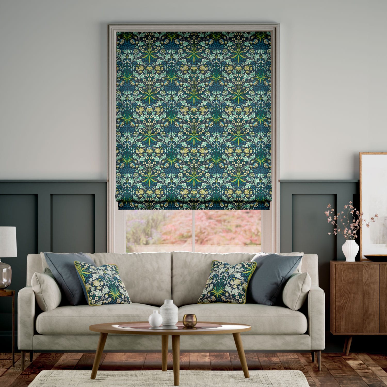 ウィリアムモリス ヒヤシンス エメラルド ローマンシェード