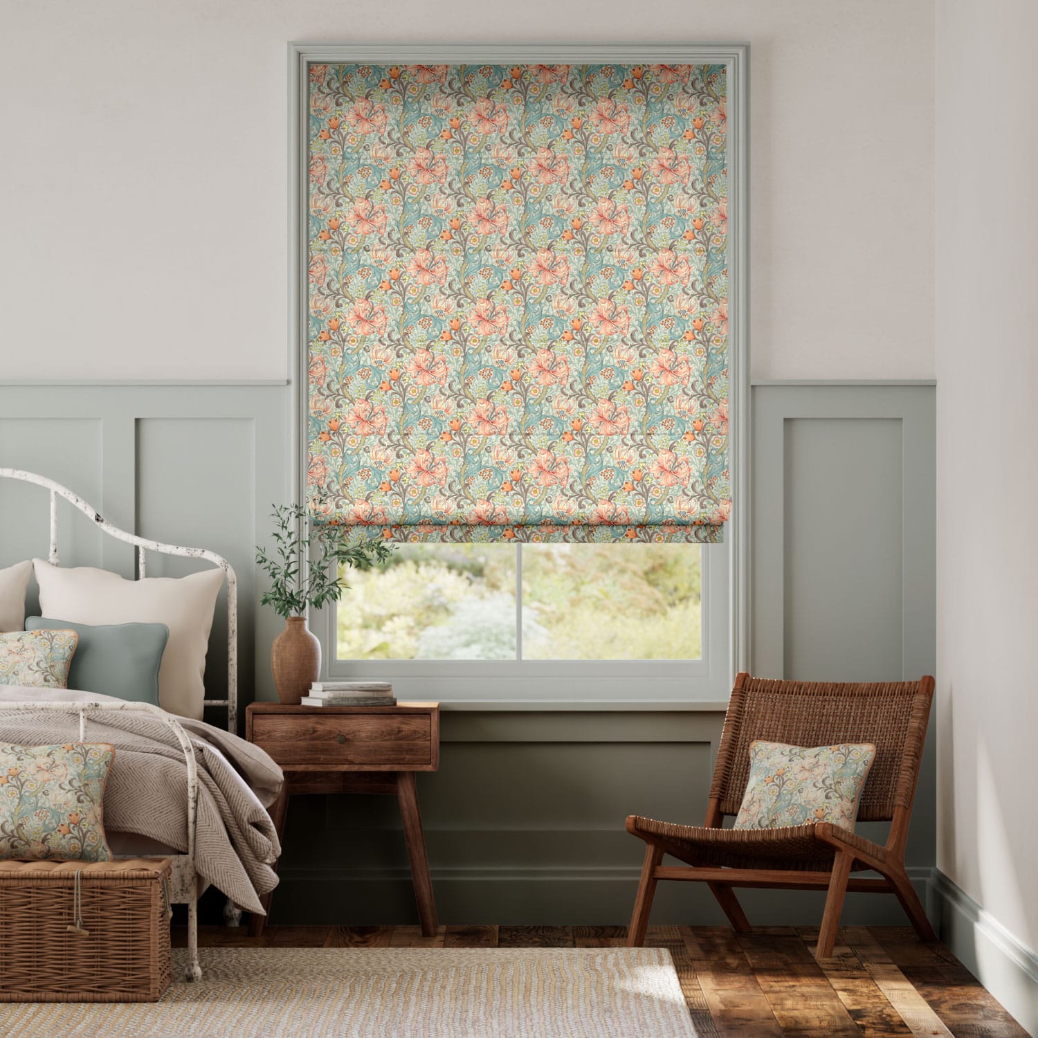 ウィリアムモリス ゴールデンリリー コーラル ローマンシェード