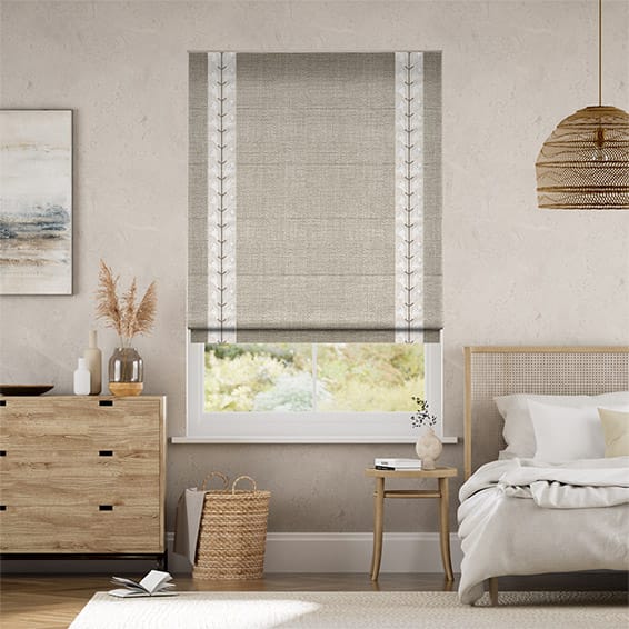 リネン ホップサック&チャッツワース アイボリー ボーダー ローマンシェード