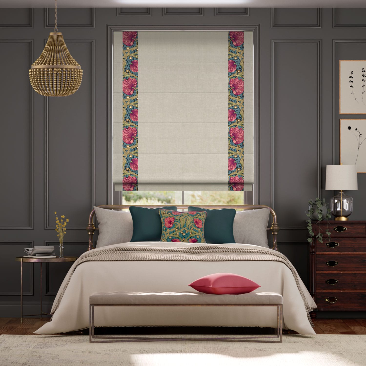 ウィリアムモリス ピンパーネル ティール&ビジュリネン ラテ ボーダー ローマンシェード