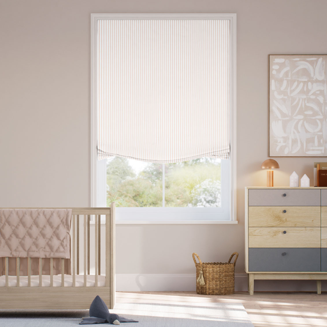 人気なエラストライプ コンフェッティピンク ローマンブラインドが、リラックススタイルになって登場です!