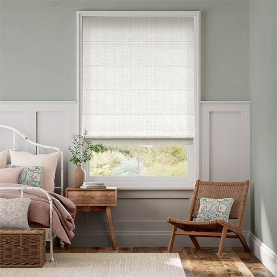 控えめでニュートラルなオフホワイトの色調と、シックで柔らかい織り物のカバンディッシュ エクリュ ローマンシェードは、どんなインテリアスキームにも溶け込みます。