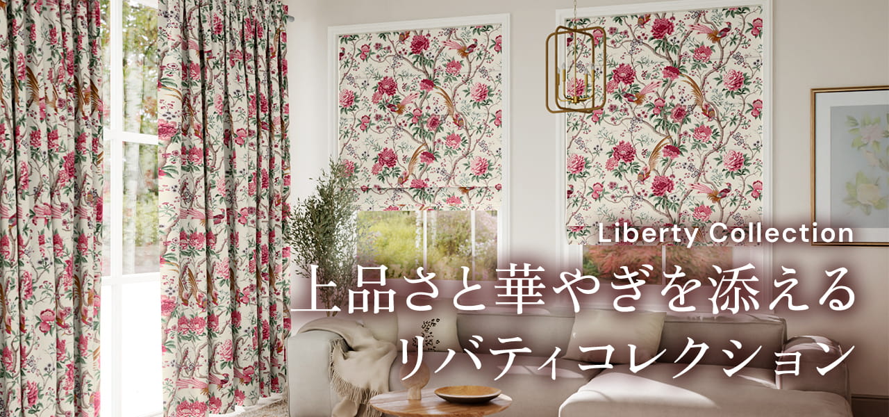 リバティシリーズの中でも特に人気の高いロールスクリーン、ローマンシェード、カーテンを集めました。世代を超えて支持されるリバティのデザインで、お部屋に華やかで上品なアクセントをプラスしてみませんか。