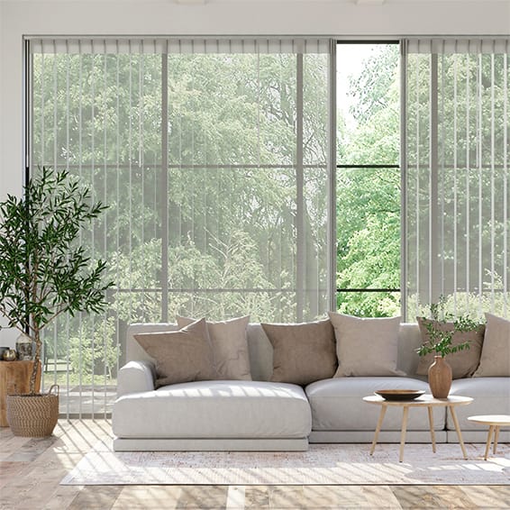 モダンなルチア ミスト バーチカル・シアーブラインド なら、日差しを優しくフィルターして部屋を明るく保ちつつ、外から中を見えにくくして、プライバシーを守ります。