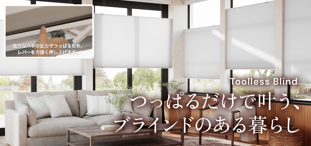 すべて「つっぱり ブラインド」としての機能を備えており、お部屋の雰囲気や用途に合わせて最適な一枚が見つかります。