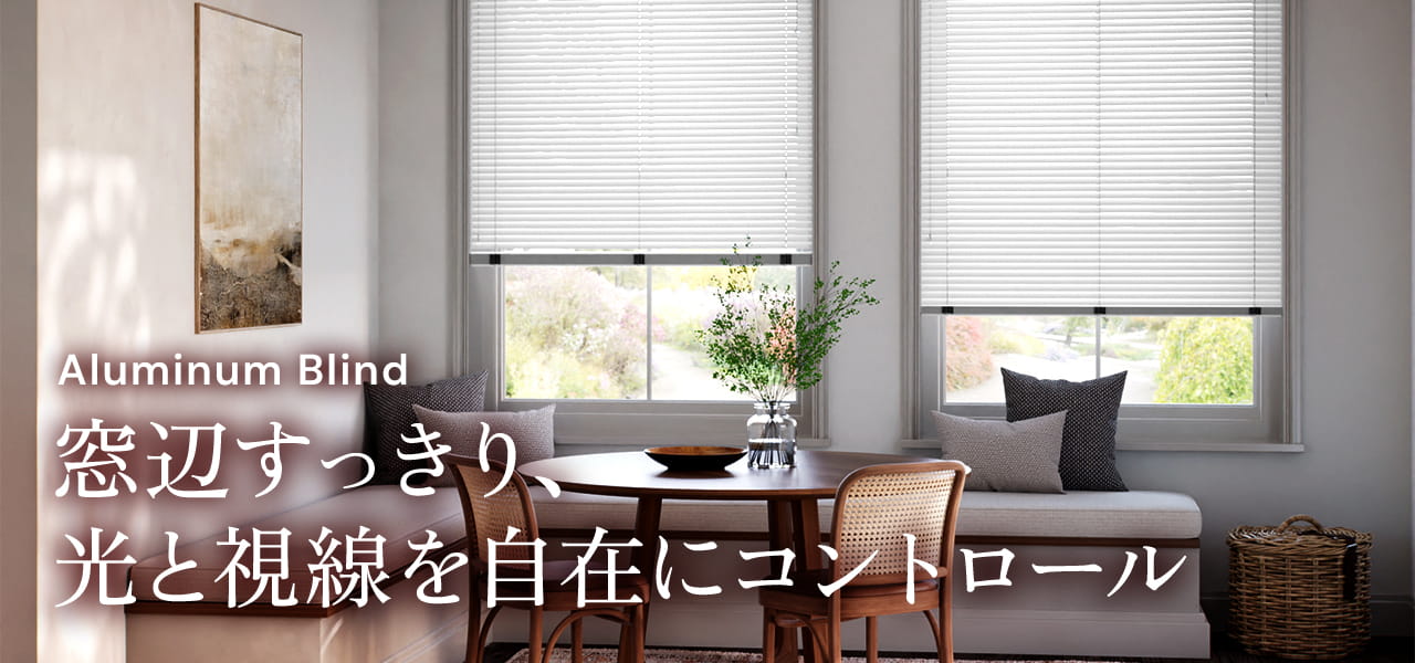 シンプルで実用的なアルミブラインドは、多くのお客様に選ばれている人気アイテムです。光や視線を自在にコントロールできるスラット構造。豊富なカラーバリエーションやウッド調デザインも揃っているので、お部屋の雰囲気に合わせて選べます。